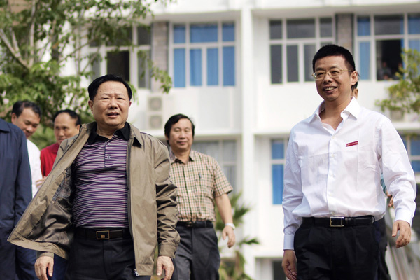 海南省人大副主任吴昌元在校领导陆丹的陪同下参观校园