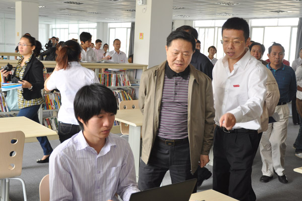 在图书馆,代表们详细询问了我校图书馆的藏书量和使用量数据,并通过与其他高校的数据对比,充分肯定了我校在图书馆建设上所做出的成绩。通过参观校史馆,代表们在对我校办学五年来所走过的创业、发展之路有了更清晰的了解,盛赞我校短时间取得如此发展成绩难能可贵之后,更对我校未来发展之路寄予了更高的希望和美好的祝福。