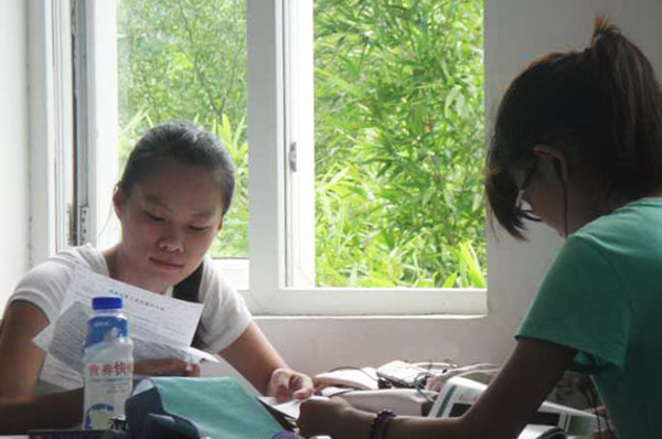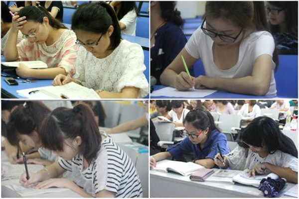 窗外的植物静静地看着正在准备考试的同学们 对于法学专业的学生们来说,在大一大二阶段通过英语四六级是为大三的司法考试免除后顾之忧,所以通过四六级考试的阶段性学习任务也就显得极其重要。早自习的时段,除了英语课代表领读英语,同学们也积极地背记词汇;晚自习的时段,班级也会组织观看英语视频;图书馆和自习室里,是学子们认真研做习题的身影,年轻的他们相信天道酬勤。 除了学生为四六级考试准备忙碌,老师们也为此做出努力。记者采访了法学院英语组组长陈英老师,她说:首先,四六级考试的准备是一个长期的过程,只有在平时的学习中积累了足够的词汇量和精做真题,在即将考试的冲刺阶段才会有所收获;其次,临近考试,心态平稳也是极其重要的,面对考试,要充满信心;最后,英语四级考试只是英语学习阶段的基本要求,并不是最终的目标,同学们应该以更高的目标要求自己。 来自艺术学院的报道:《考研英语来培训 英语学习新风尚》