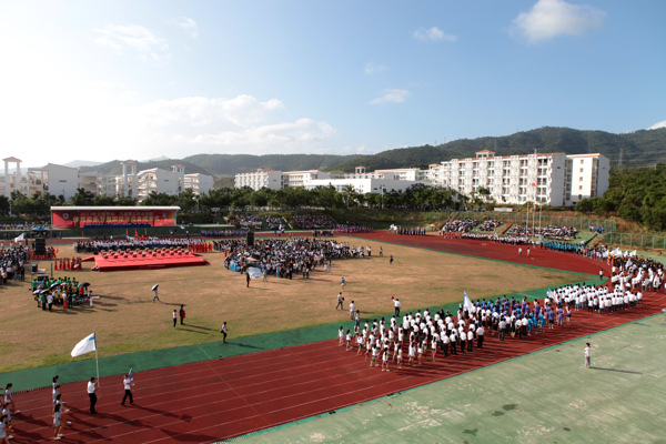 伴随着音乐与掌声,13个学院的运动员和教工代表队精彩入场