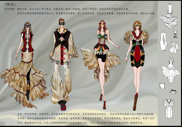 本次大赛共分结课代表作品展及t台走秀服装展两个环节,所有作品均由我校服装设计专业学生制作完成。他们在广泛吸收中西方服饰文化的基础上,完美结合海岛风情,裁剪出了一组组或贴近原始自然、或高雅纷繁、或环保时尚的服饰,让艺术之花得到尽情绽放。