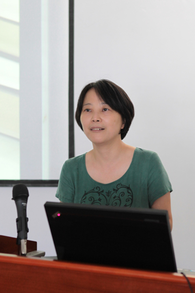 社科部副主任王�r代表全体社科部教师向学校的赠书表示由衷的感谢