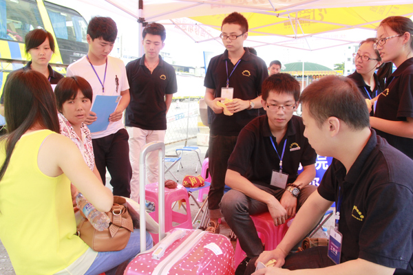 每一位参与迎新工作的阳光学子都经过了校团委的严格选拔和培训。为了能顺利地接到每一位来校报到的新生,他们每天很早从学校出发,一直忙碌到深夜。尽管工作时间长,任务重,他们的脸上却始终洋溢着微笑。在他们眼中,为新生同学和家长提供热情、细致而周到的服务,是代表开云手机入口给初来乍到的他们递上的一张最精美的名片。 截止8月31号下午,2013级新生报到大厅——风雨运动场也已经完成了最后的布置。工作人员表示,大家都希望能够充分做好前期准备工作,最大限度替新生和家长着想,尽量让家长和新生们少跑冤枉路,在最短时间内完成新生报到事项,并为家长提供休息座位和移动冷气机,鼓励新生自主完成报名。记者还得知,在报到现场各个迎接点,每个专业还特设一名专业老师为学生、家长详细解答专业问题,帮助新生适应学校,适应大学生活与学习,有一个新的、愉快的开始。 我校迎新的工作人员们,已经在协调、接待、后勤保障、财务、教学咨询、社区管理、安全保卫等一系列工作上做好了充分的准备,他们期待着为2013届新生同学和家长们提供最优质的服务!