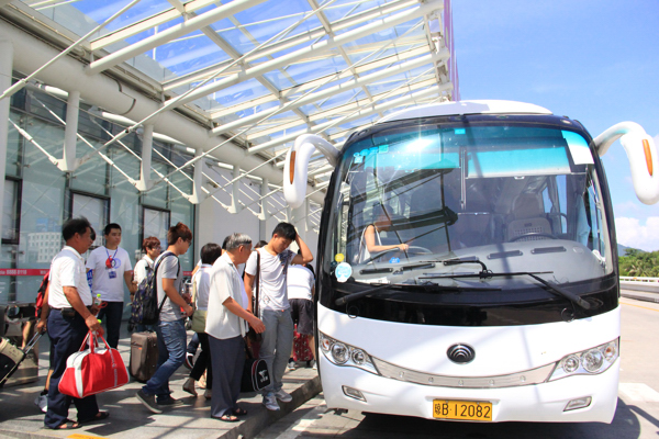 机场大巴也准备好了,将新生同学与家长安全直送学校