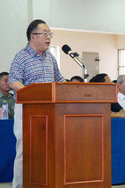 校领导王勋铭做军训动员报告