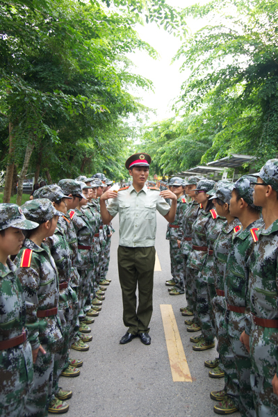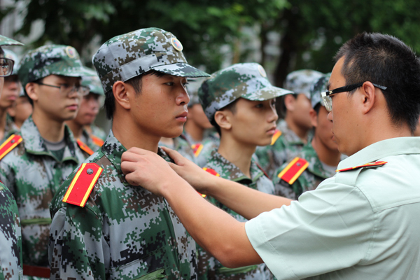 教官帮助学员整理着装