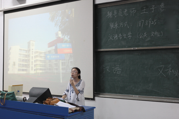 自我介绍,从此我们同为阳光学子 各学院高度重视本次新生主题班会,从班会策划、通知下达、现场组织、内容安排都细致用心。许多学院将班会的时间、地点、带班辅导老师的联系电话等内容安排做成纸条夹在入学须知中,发给每一位报到的新生。 旅业管理学院的辅导员助理张澈在班会开始前对学生记者说:“同学们都早早地来到教室等待班会的开始,看得出来他们很重视这大学生活中的第一次班会的,我一来他们就都纷纷上前来询问我关于学校的很多问题,而我们作为比他们先体验大学生活的学长、学姐们更要为他们作好疑难解答,也希望在将来他们比学长学姐们更优秀。”