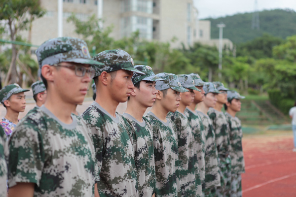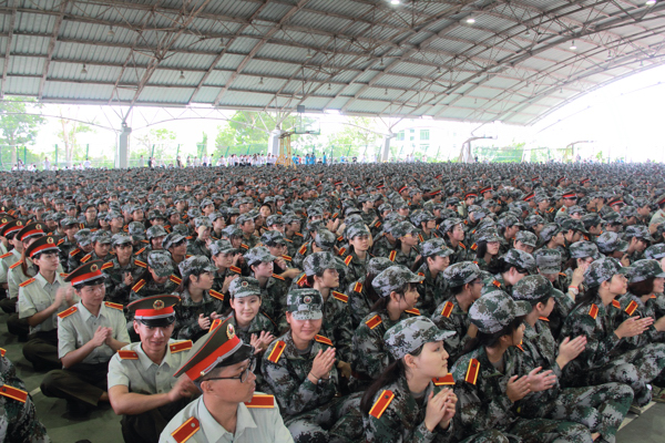 军训动员大会现场,全体整齐列队,个个精神抖擞 身穿迷彩服的13级新生个个精神抖擞,在风雨运动场里整齐列队。 校领导王勋铭做军训动员报告,“2013级新生军训的号角已经吹响,希望同学们发扬军人‘流汗不流泪,流泪不掉队’的精神,学习军人的优秀作风,陶冶情操、磨砺意志、强健体魄,为大学期间的紧张学习和健康生活打下良好的基础。” 它还转达了党委书记、校长陆丹对新生的寄语“每个人都带着自己的梦想而来,每个梦想都需要勤奋,比勤奋更重要的是坚守,比坚守更重要的是矢志不渝地相信自己”,以此勉励即将军训新阳光学子们。 大学军训教育是学校全面贯彻党的教育方针,积极推进素质教育的客观要求,是为国防和军队建设培训高素质后备兵员的重要举措,也是大学生锻练体魄、意志、进取精神和健康人格的必修课程。希望每位同学通过军训更好地领悟纪律的含义、规范的意义、生活的真谛、人生的价值,全面提升同学们的身心素质,团结一致,奋勇拼搏,努力推进学校的十年卓越进程。希望大家从现在做起,从军训做起,从身边的点滴做起,为实现建设高水平、有特色的大学奋斗目标不断作出新的贡献。
