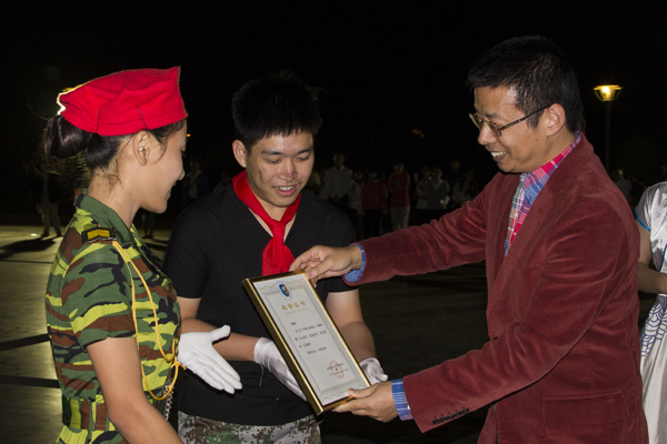 一番比拼过后,音乐学院代表队获得本次比赛一等奖,管理学院代表队获得二等奖,人文学院获得三等奖。外语学院代表队、财经学院代表队、理工学院代表队、艺术学院代表队分别获得了道德风尚奖、最佳组织奖、最具人气奖、最具创意奖。党委书记、校长陆丹和评委老师一起为获奖者颁奖,并与同学们合影留念。