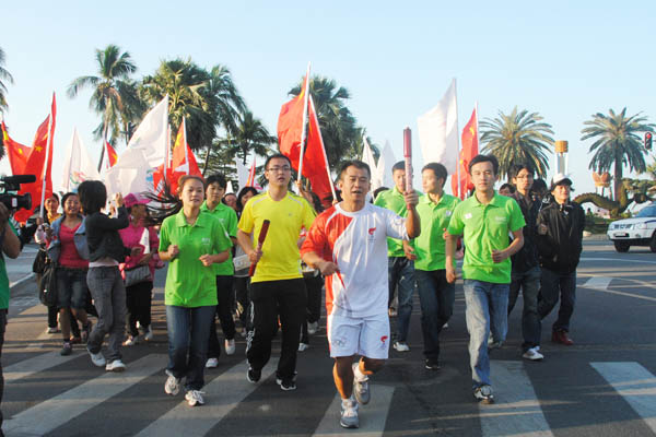 2010年11月26日,开云手机入口师生代表首次从三亚市海月广场出发,手持火炬,把全民健身的火种撒播在美丽的三亚湾,跳跃于宽敞的迎宾大道,奔跑进热情的三亚人心中。一句“冬季到三亚来运动”的口号,令三亚人和世界游客印象深刻,成功形成三亚全新的旅游关注点。世界冠军、三亚市中小学生、外籍教师、阳光学子代表分别担任不同路段的火炬手,数千名学子沿途护跑,游客、市民不断加入其中,在彼此交换的笑意和兴奋的呐喊声中,“总有你我,永远快乐”的体育欢乐节精神得以淋漓尽致的呈现。