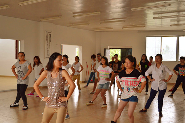 “来,男生们注意了,从下一个鼓点开始,你们就以倒三角的队形加入进来,注意看领舞的动作,跟紧节拍,注意保持间距,以免做动作的时候伸展不开。”我校劲舞社社长焦亚楠正在指导社员们进行新舞蹈的排练。“这支舞将在‘天涯音乐节’闭幕式上表演,我们很珍惜演出前的每一次训练机会。”焦亚楠告诉记者。