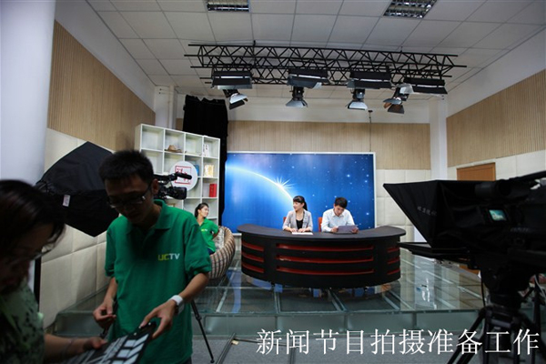 目前,uctv师生团队规模超过百人,他们利用现有的新闻演播室、专业录音室、大型演播厅、现场转播车、校园采访车、摄像机,大型摇臂、轨道车、稳定器、非编系统等一流设备,进行着校园日常新闻采编直播、电视节目制作以及学校会议晚会等大型活动的实况转播。