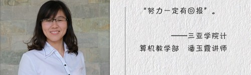 记 者:作为一名计算机专业的女老师,您是否觉得与男老师相比在理科上会有劣势? 潘玉霞:不会,理科一直是我所喜欢的,能够担任计算机专业老师我很高兴,虽然在这个专业女性教师没有什么优势,但我相信“勤能补拙”,既然我做出这样的选择,我就要对学生、学校负责,付出比其他老师会更多一些。同时,作为女老师,可以更好地与学生进行沟通,更有耐心的去教导学生。 记 者:那您在授课的过程中,有什么活跃课堂的秘诀呢? 潘玉霞:与学生的互动是很重要的,计算机不同于其他的专业课程,由于是公共基础课,有一定的枯燥性,但是我会在课上让学生对课堂所学的知识进行练习,不断地巩固技巧,强化记忆,有效地提高课堂学习效率。对于学生提出的问题与疑惑,我也都会一一认真地进行解答。 记 者:谈一谈您对于教书育人的看法吧? 潘玉霞:首先要贯彻好学校的育人理念,严于律己,加强自身的道德文化修养,将自己的所思、所想、所学传授给学生,从而给学生传达一种正确的人生观、价值观,引导他们更快地发展。我也有自己的孩子,在教导孩子的过程中,懂得了孩子的需求与想法,更能够体会现在同学的想法,将这种思想融入平时的教学中,把学生当做自己的孩子一般,循序善诱,让学生更易于接受。教书育人不仅仅是学习上的教导,更应是教导学生如何做人,更好地适应这个社会。他们走向社会的成功与否,有着教师一部分的责任,现在我们尽可能将自己所掌握的更多的知识、为人处世教给他们,让他们在社会中少走些弯路,有更好的发展。 记 者:在计算机方面,您对学生还有其他课外的培训吗?