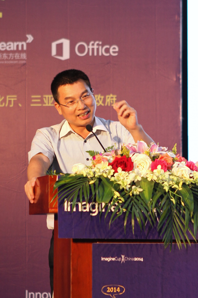 微软(中国)dpe技术顾问总监夏鹏代表本次大赛的评委会回顾、总结过去4个月的比赛过程。大赛评委会对于参赛选手参与的热情、创新的激情、青春的风采给予了充分肯定,并对“青年创新”在海南落地生根发芽提出期望。