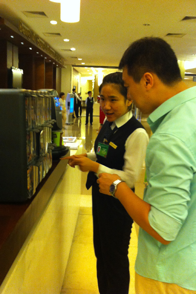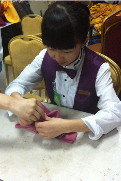 自年会开始起,每天都有许多人向我问路,由于会场环形的建筑结构,致使很多人不能一下子熟悉地辨认方向,这与我刚刚来时的感受一样(嘿嘿……)。多亏了年会前的培训,现在无论宾客向我询问哪个地点,我都能清楚地向其指明方向。