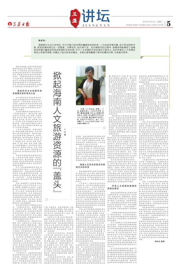 海南是文化交汇的地区,作为中国乃至世界的重要旅游目的地,人文旅游资源丰富,地方民俗特色浓郁,旅游资源利用已达一定程度。尽管如此,却仍有不足。在长期研究的过程中,杨樨讲师就看到了海南旅游发展只重视自然旅游资源的开发利用,对于人文资源的开发利用还不够充分,自然资源与人文资源没有充分发挥作用等,并提出了自己的观点看法。本报记者特整理了其中的精华内容,与读者共思考。