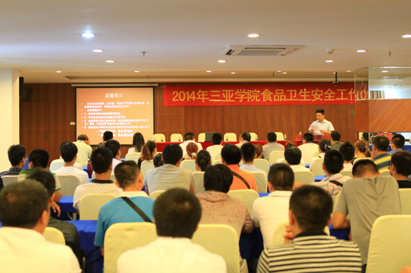 5月7日,我校校园管理部在白鹭苑一楼会议室召开了食品卫生安全工作会议。 本次会议进一步贯彻落实了《2014年海南省学校食品卫生安全工作会议》内容,强调安全为先、自我约束。会上,校总务长王昌军重申食品安全问题的重要性。我校各大食堂的商铺、食品店、各个超市的负责人听了有关食品卫生、食品的原材料、导致食品中毒触犯的法律法规三个方面的讲座,并签订《后勤保障处餐饮服务行业“卫生、消防、社会治安”安全综合治理责任书》。 会议增强了大家对食品安全问题的认识,讲座增进了食品安全方面的知识,为营造安全、美好的校园环境提供了保障。
