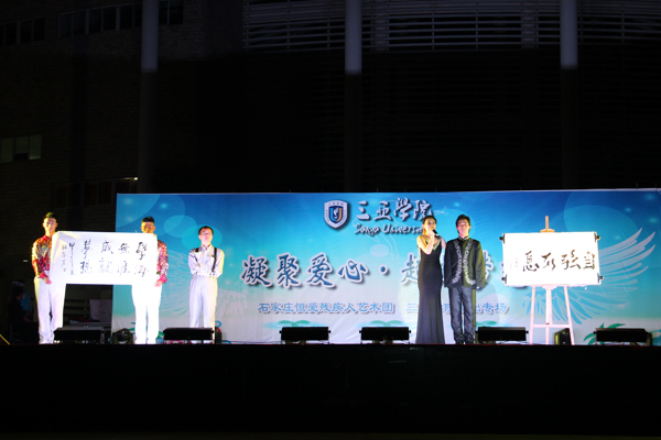 校领导沈建勇在接受记者采访时表示,恒爱艺术团的远道而来是非常难能可贵的。邀请恒爱艺术团来校演出,说明了我校对残疾人公益事业的大力支持,也是提升校园文化品质的好方法,愿他们的精神激励师生为梦想不懈努力。 据了解,恒爱艺术团由90%的残疾人(包括聋哑盲、肢残)和少数爱心志愿者组成,2004年被评为“全国优秀艺术团体”,2005年荣获中宣部、文化部“全国百家优秀基层文化先进演出团体称号”,是2008年全国政协、文化部、全国工商一致认可的“中国和谐文化建设示范单位”等等。他们的演员中有参加过央视春晚及北京奥运会开幕式演出的,有赴港澳台交流演出过的,有全国残疾人文艺调演各类奖项的获得者等等。