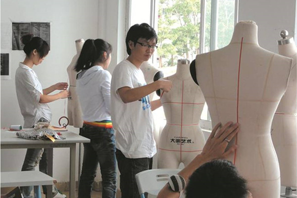 “基准线全部标记后要从正、侧、背面进行整体观察,调整不理想的部分直到满意为止。”基础模块中,杨洋会从人台、立体裁剪工具、基准线、人体标准结构等基本知识入手, 渐进到布手臂的缝制、缝纫针法等基本技能,从而带领学生了解立体裁剪,为学生日后将创意“做出来”奠定基础。