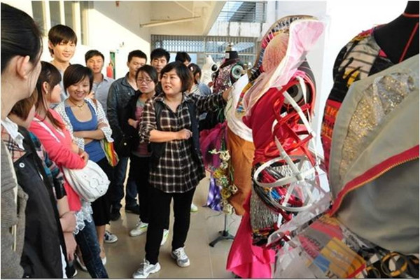 同时为了达到检验、巩固和深化教学的效果,在教学实践过程中教学团队用“以展促教”的方式将学生结课作业集中展评。2012年1月4日,09级服装与皮具设计专业在白鹭溪展厅分中国风和西方风两个板块将结课作业展出。