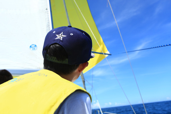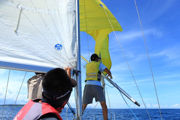 启航,专业老师正在指导如何“找到风”,风是帆船的动力之源