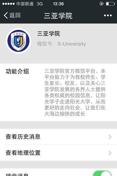 日前,我校官方微信帐号已投入试用,账号名称为:s-university。试用期间以学校概况及专业特色说明、招录动态发布、大学校园生活介绍、校内新闻及通知公告等一系列贴近考生需求的内容为主,以帮助考生及家长更便捷地了解学校。