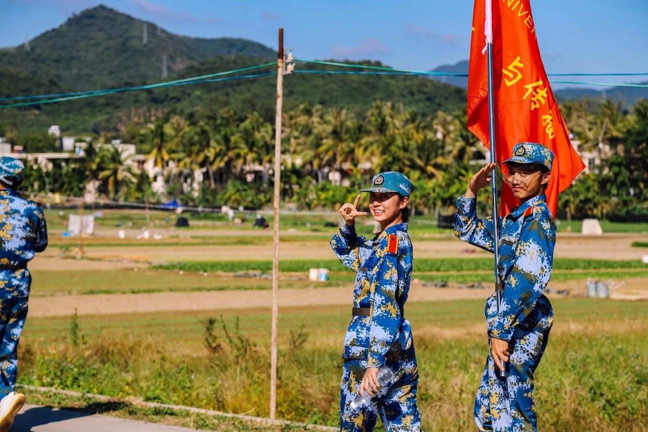 全套迷彩、作训帽、充足的水和一双轻便的鞋是留给我们的准备任务。行进过程中呼号军歌、防空演练、通过染毒地带演练,休息点响起的《团结就是力量》,从落笔村到三亚理工职业学院的一段奔袭…好像这16公里也不是那么累。当然,我指的是精神层面上的。
