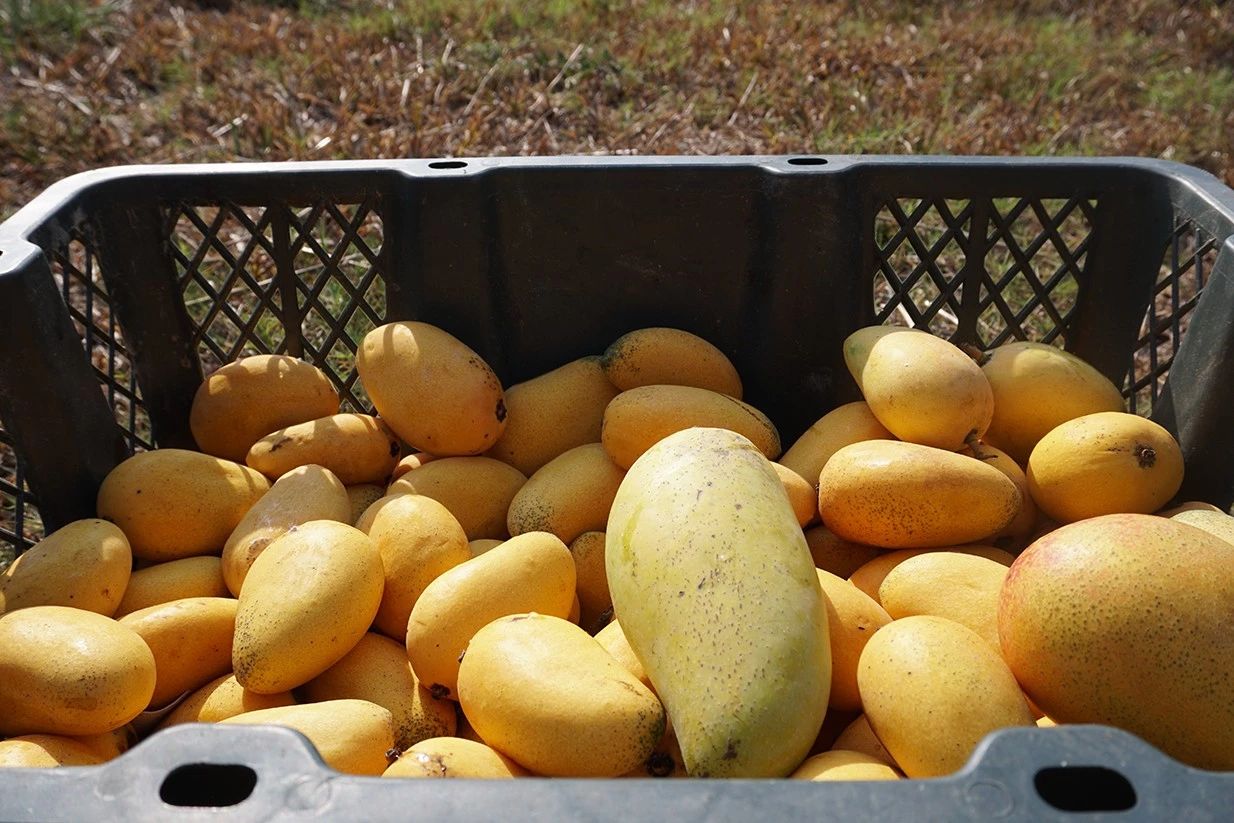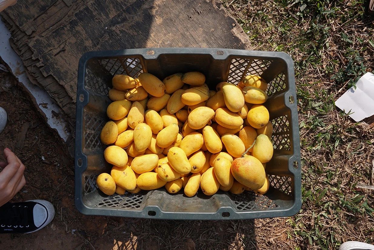 这是后山果园收获果实的第三年,也是我们给小粉儿们送芒果的第三年。