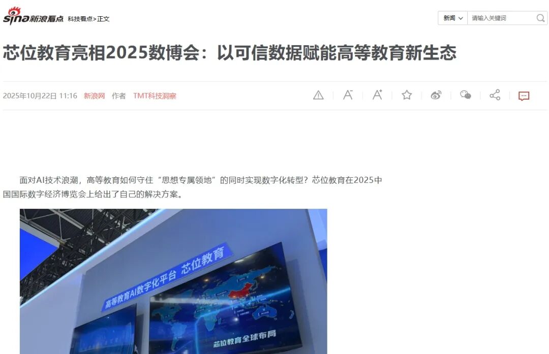 芯位教育在本届数博会上的参展动态受媒体广泛关注,累计获得超百篇相关报道。其中,涵盖了新华网、中国日报网等权威媒体,以及获得了新浪、网易、搜狐等门户网站的同步聚焦。