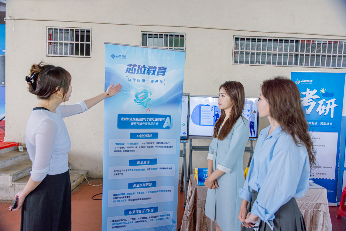 双选会深度融合AI技术,吉利教育集团的芯位教育平台通过“职业角色匹配度测试”,智能分析学生技能、倾向与岗位需求,结合行业趋势生成个性化求职报告,精准推荐适配岗位。双选会现场设置AI就业交互机,提供简历诊断、面试指导、岗位推荐等一体化自助服务;智能联播机提供24小时岗位宣传、政策宣讲、数字人滚动播报等功能,打造智慧求职新体验。