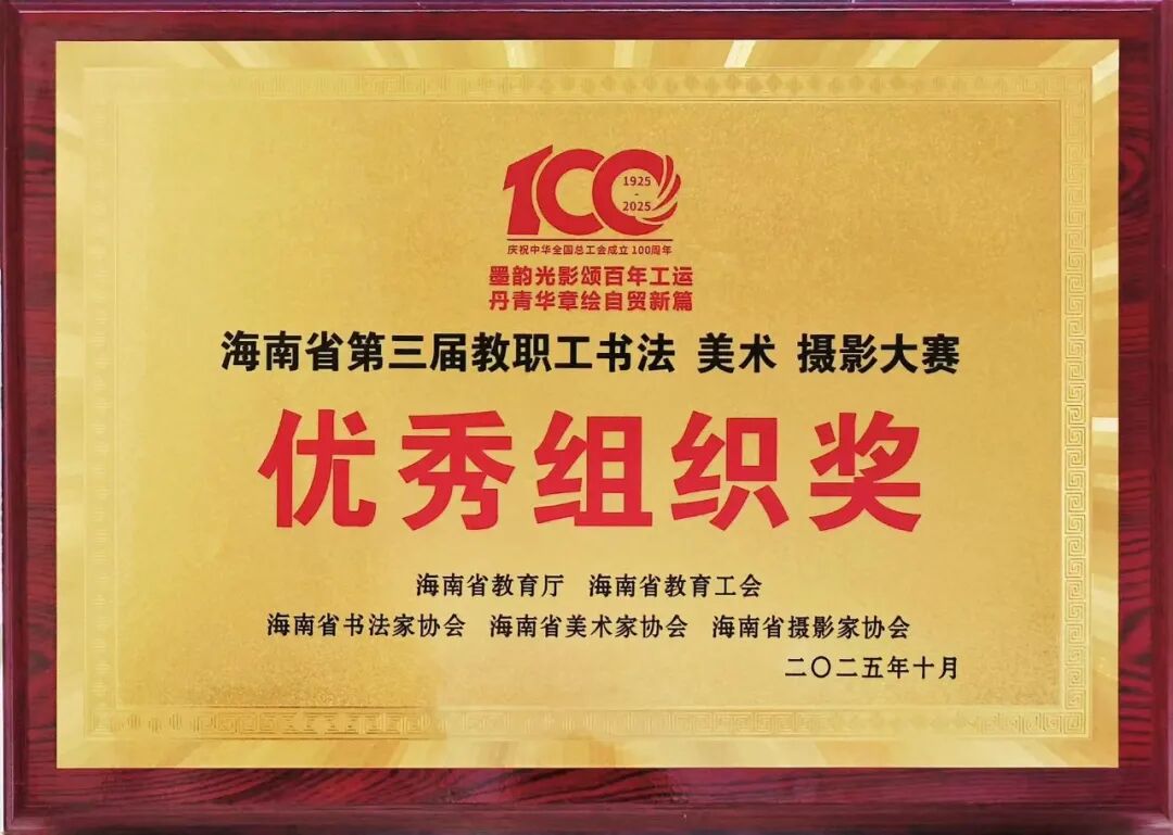 近日,海南省第三届教职工书法美术摄影大赛获奖作品展暨颁奖典礼在海南省文化馆隆重举行。开云手机入口教职工捧回3个一等奖、2个二等奖、1个三等奖及7个入选奖,同时获评“优秀组织奖”,以丰硕的艺术成果展现全校教职工深厚的文化素养与学校文化育人工作的扎实成效。