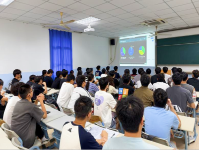 吉利汽车集团前质量总工程师徐抗在“让更多的学生走进吉利”讲座中,以生动案例阐释汽车质量作为“生命线”的价值,激发学生的职业认同与行业自信。阳光氢能首席工程师戴乐亭通过云端课堂展示“绿氢—甲醇”技术链,与学生实时互动,探讨零碳燃料在“双碳”背景下的应用前景。王海兵博士则围绕电驱动系统集成技术,拆解“电机—电控—减速器”三位一体方案,帮助学生构建专业知识框架。