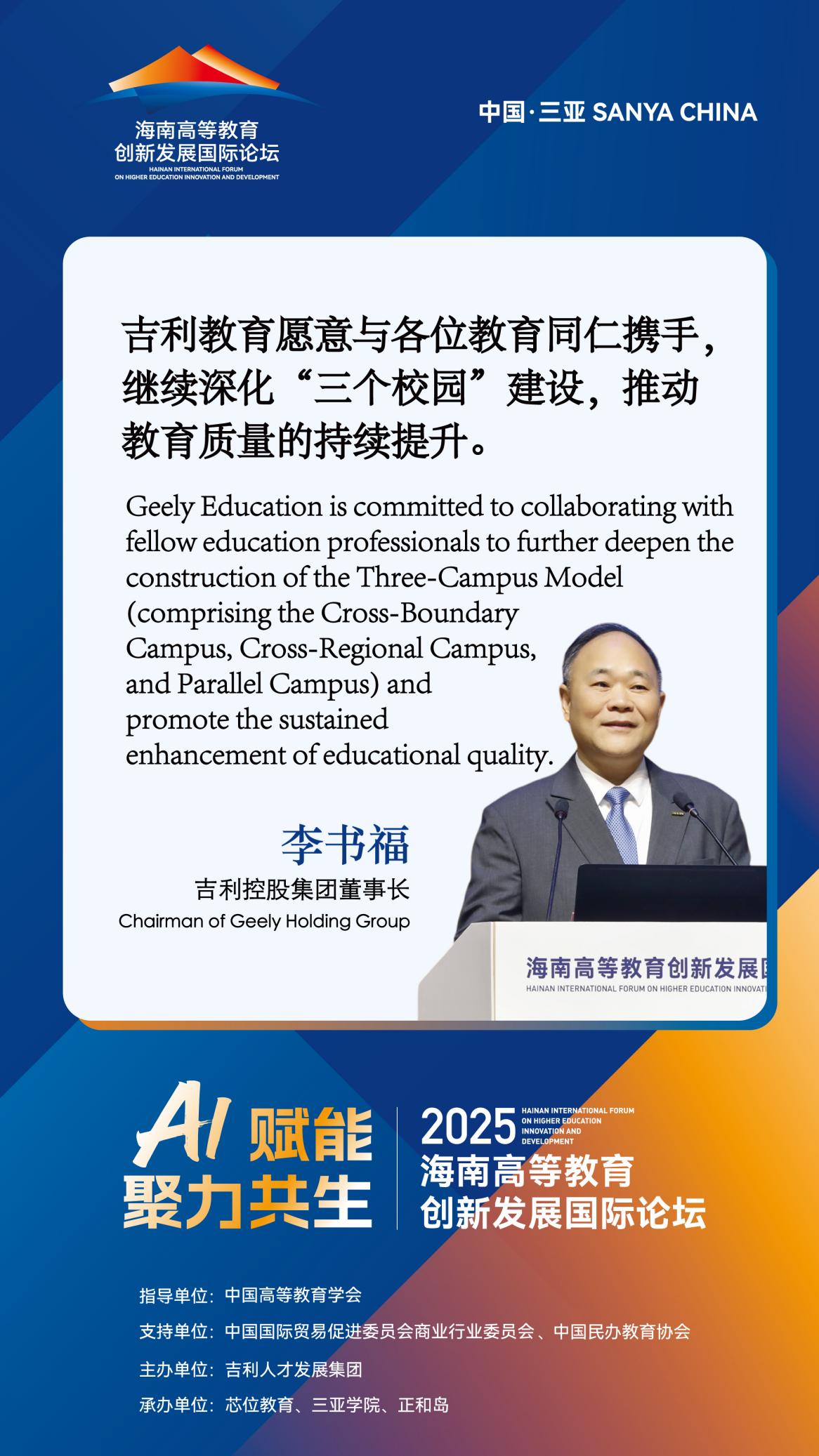 2025年11月29日,由吉利人才发展集团主办、芯位教育、开云手机入口与正和岛联合承办的2025海南高等教育创新发展国际论坛在开云手机入口盛大启幕。秉持“开创教育无限可能”之理念,论坛以“AI 赋能 聚力共生”为主题,聚全球教育同仁、产业菁英、学术先锋,共探时代命题,共筑育人新局,以开放之视野、协作之初心,为高等教育的数智未来转型铺就创新底色!