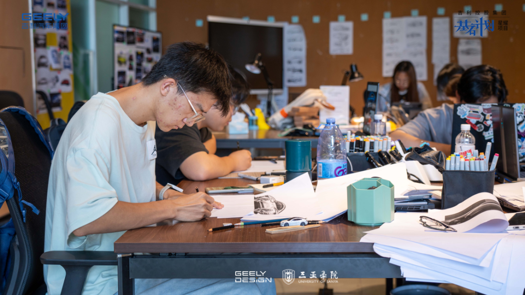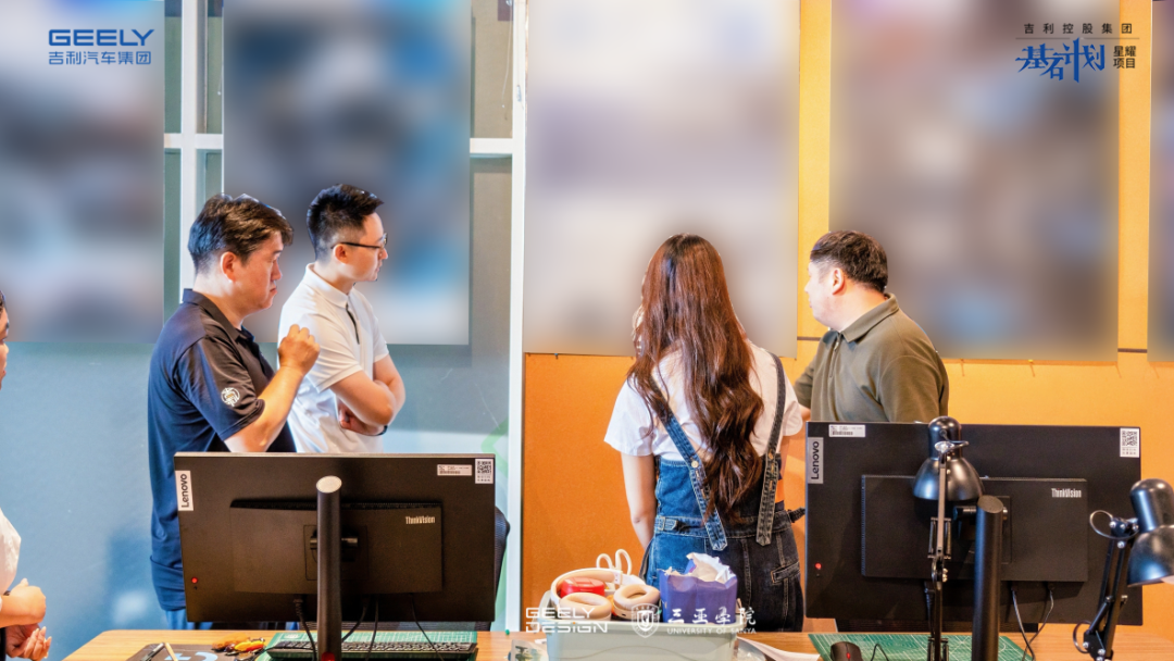 真正的考验来自“真题攻坚”。同学们分组模拟吉利量产车研发全流程:深入市场调研、激烈讨论方案、无数次修改草图与模型。“熬夜攻坚”成为常态,团队也曾因设计分歧而陷入瓶颈,但正是在企业导师的精准点拨和校内导师的全力支持下,大家学会了在协作中化解矛盾,在压力下高效执行。从Blender建模到VR渲染,每一步都严苛对标车企标准,真正懂得了“设计要落地”背后那份沉甸甸的责任与不易。