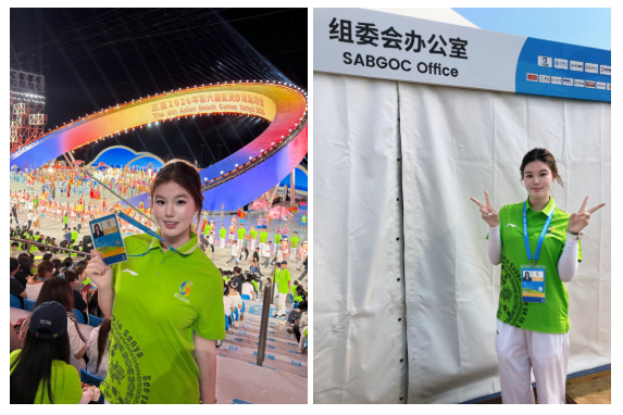 我是亚沙会沙滩足球项目的英语志愿者。作为阿联酋队伍负责人,我用英语沟通、用微笑服务,从训练指引到装备检查,每一次耐心回应都换来运动员真诚的“谢谢”。体育是跨越文化的桥梁,志愿精神是把“我”变成“我们”的勇气。我将继续用微笑和担当,传递中国青年的温暖。
